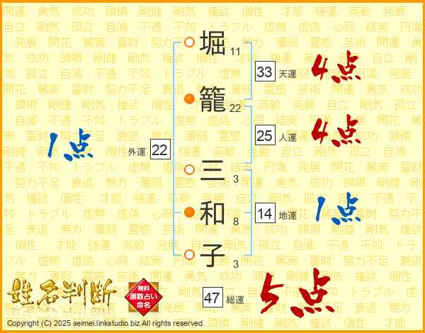 堀籠三和子さんの総運は47画の5点!