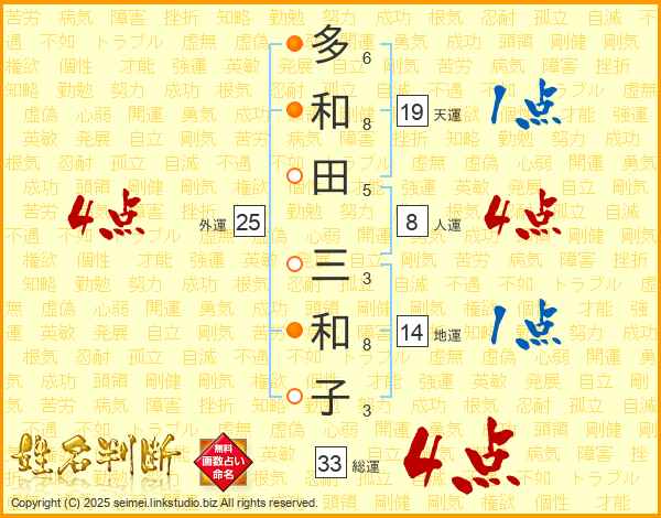 多和田三和子さんの総運は33画の4点!