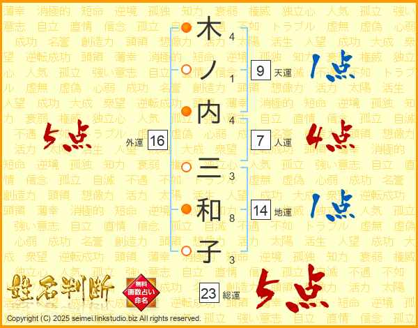 木ノ内三和子さんの総運は23画の5点!