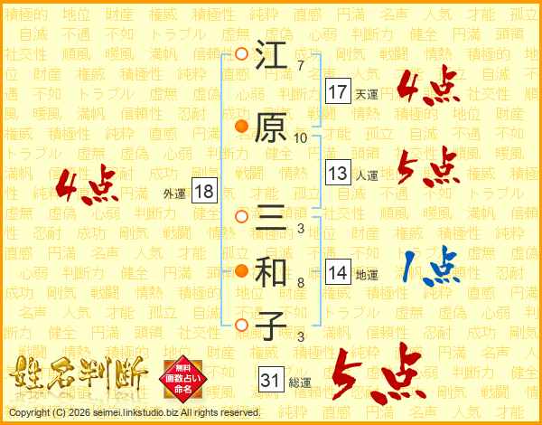 江原三和子さんの総運は31画の5点!