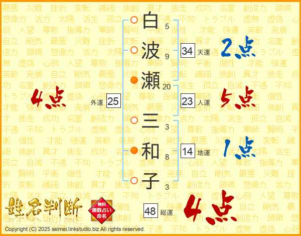 白波瀬三和子さんの総運は48画の4点!