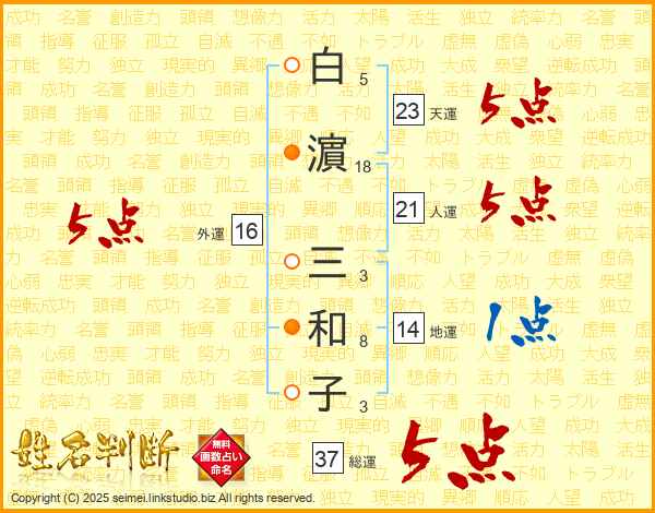 白(5画)濵(18画) 三(3画)和(8画)子(3画)