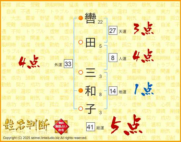 轡(22画)田(5画) 三(3画)和(8画)子(3画)