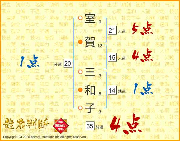 室賀三和子さんの総運は35画の4点!