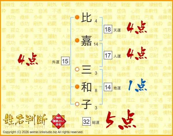 比嘉三和子さんの総運は32画の5点!