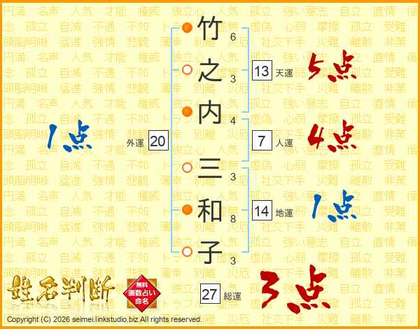 竹之内三和子さんの総運は27画の3点!
