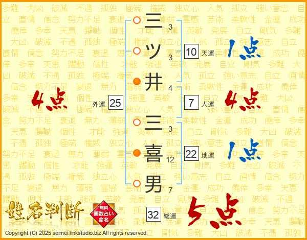 三ツ井三喜男さんの総運は32画の5点!