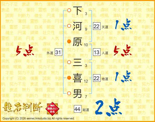 下河原三喜男さんの天運は22画の1点!
