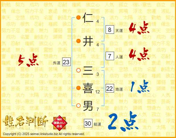 仁(4画)井(4画) 三(3画)喜(12画)男(7画)