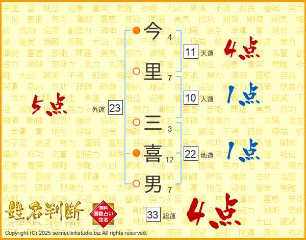 今里三喜男さんの天運は11画の4点!