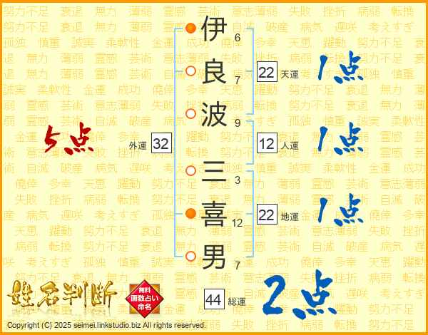 伊良波三喜男さんの天運は22画の1点!