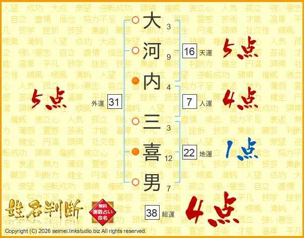 大河内三喜男さんの総運は38画の4点!