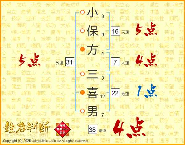 小保方三喜男さんの総運は38画の4点!