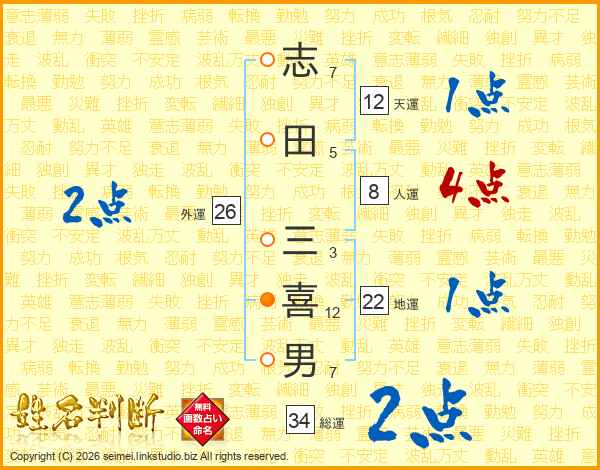 志田三喜男さんの地運は22画の1点!