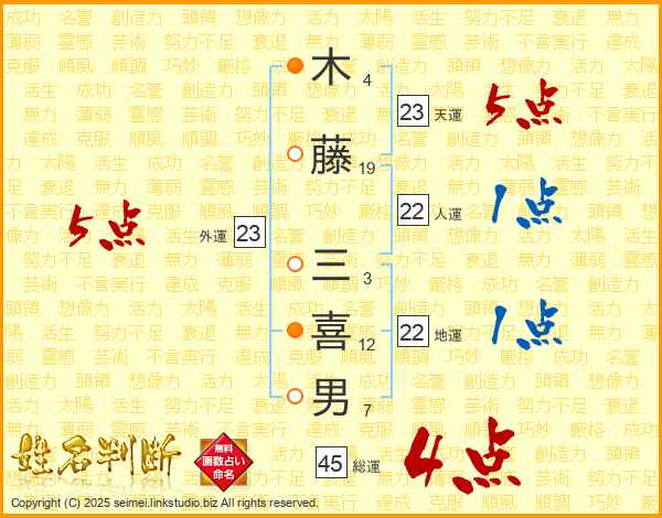 木藤三喜男さんの総運は45画の4点!