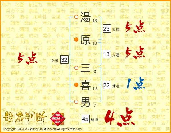 湯原三喜男さんの天運は23画の5点!