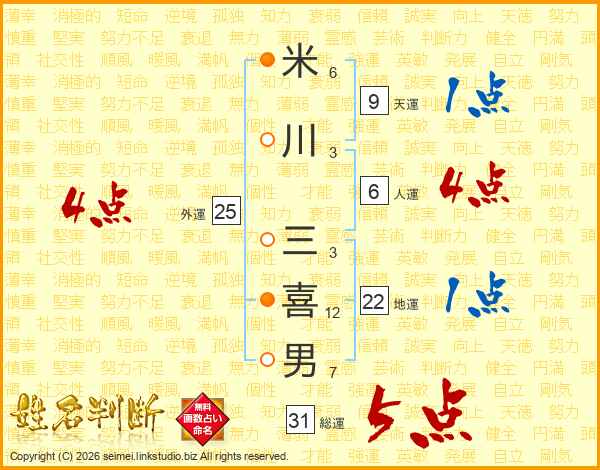 米川三喜男さんの総運は31画の5点!