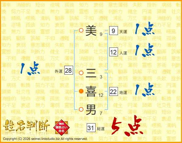 美三喜男さんの総運は31画の5点!