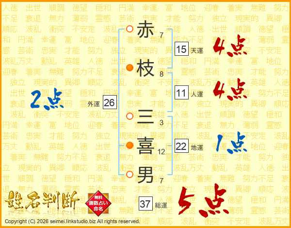 赤枝三喜男さんの総運は37画の5点!