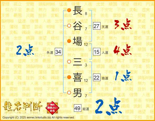長谷場三喜男さんの天運は27画の3点!