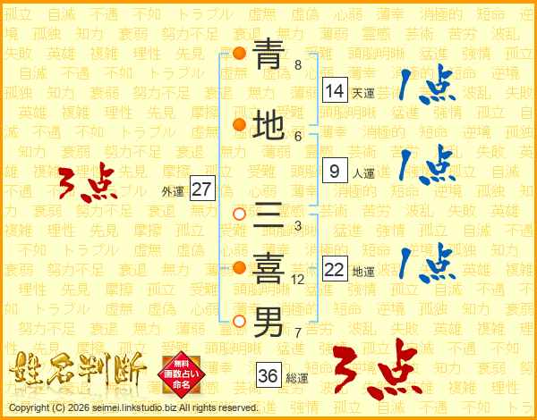 青地三喜男さんの総運は36画の3点!