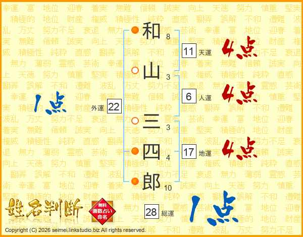 和山三四郎さんの天運は11画の4点!