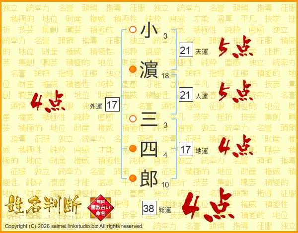 小(3画)濵(18画) 三(3画)四(4画)郎(10画)
