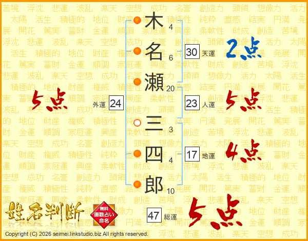 木名瀬三四郎さんの総運は47画の5点!