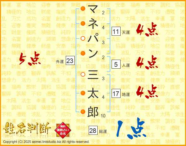 マネパン三太郎さんの地運は17画の4点!