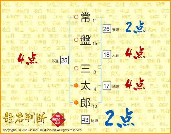 常盤三太郎さんの天運は26画の2点!