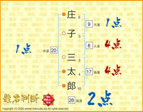 庄子三太郎さんの総運は26画の2点!