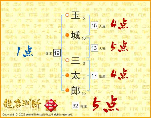 玉城三太郎さんの総運は32画の5点!
