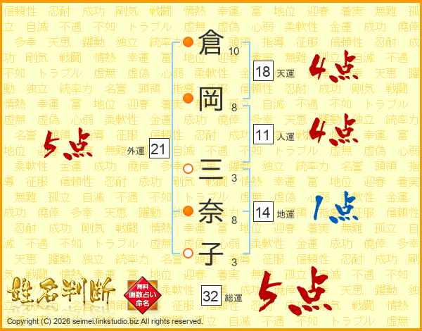 倉岡三奈子さんの総運は32画の5点!