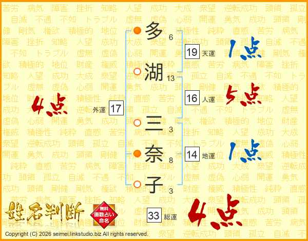 多湖三奈子さんの外運は17画の4点!