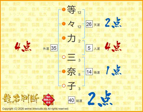 等々力三奈子さんの天運は26画の2点!