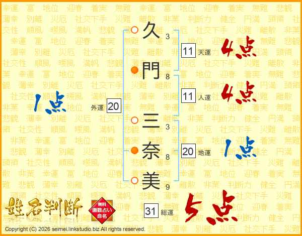久門三奈美さんの総運は31画の5点!