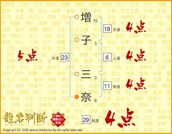 増子三奈さんの総運は29画の4点!