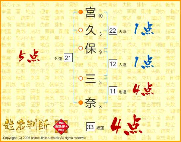 宮久保三奈さんの総運は33画の4点!