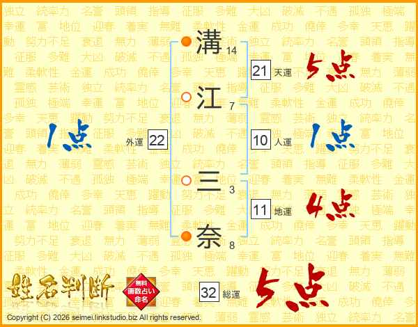 溝江三奈さんの総運は32画の5点!