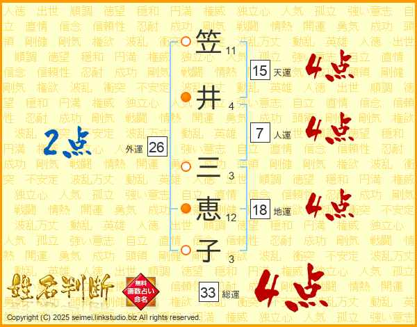 笠井三恵子さんの総運は33画の4点!