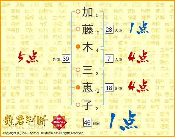 加藤木三恵子さんの外運は39画の5点!