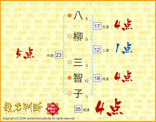 八柳三智子さんの総運は35画の4点!