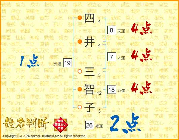 四(4画)井(4画) 三(3画)智(12画)子(3画)