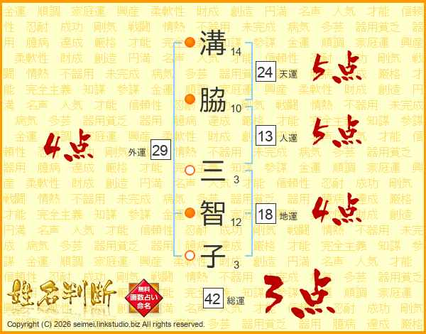 溝(14画)脇(10画) 三(3画)智(12画)子(3画)