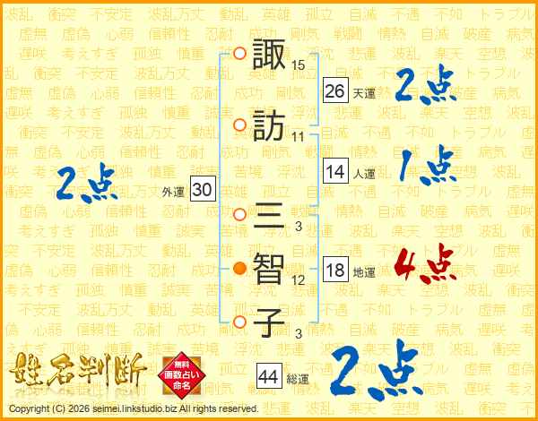 諏訪三智子さんの総運は44画の2点!