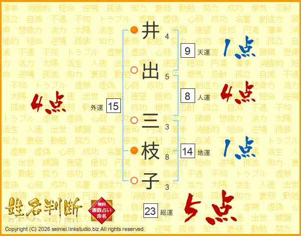 井(4画)出(5画) 三(3画)枝(8画)子(3画)