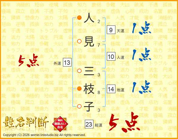 人(2画)見(7画) 三(3画)枝(8画)子(3画)