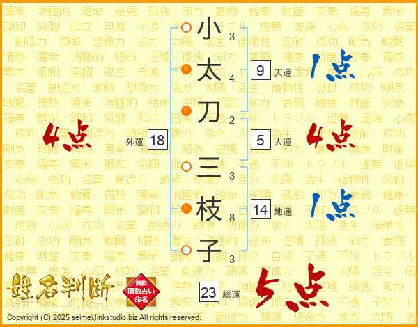 小(3画)太(4画)刀(2画) 三(3画)枝(8画)子(3画)