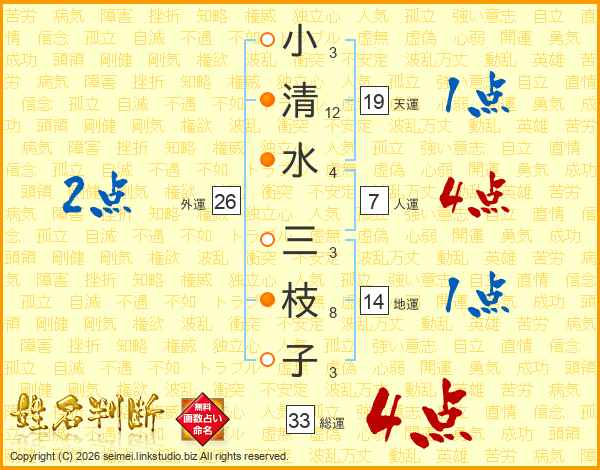 小清水三枝子さんの総運は33画の4点!