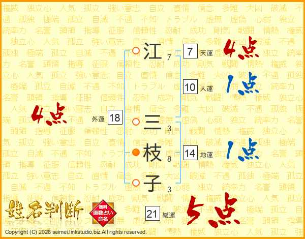 江三枝子さんの総運は21画の5点!
